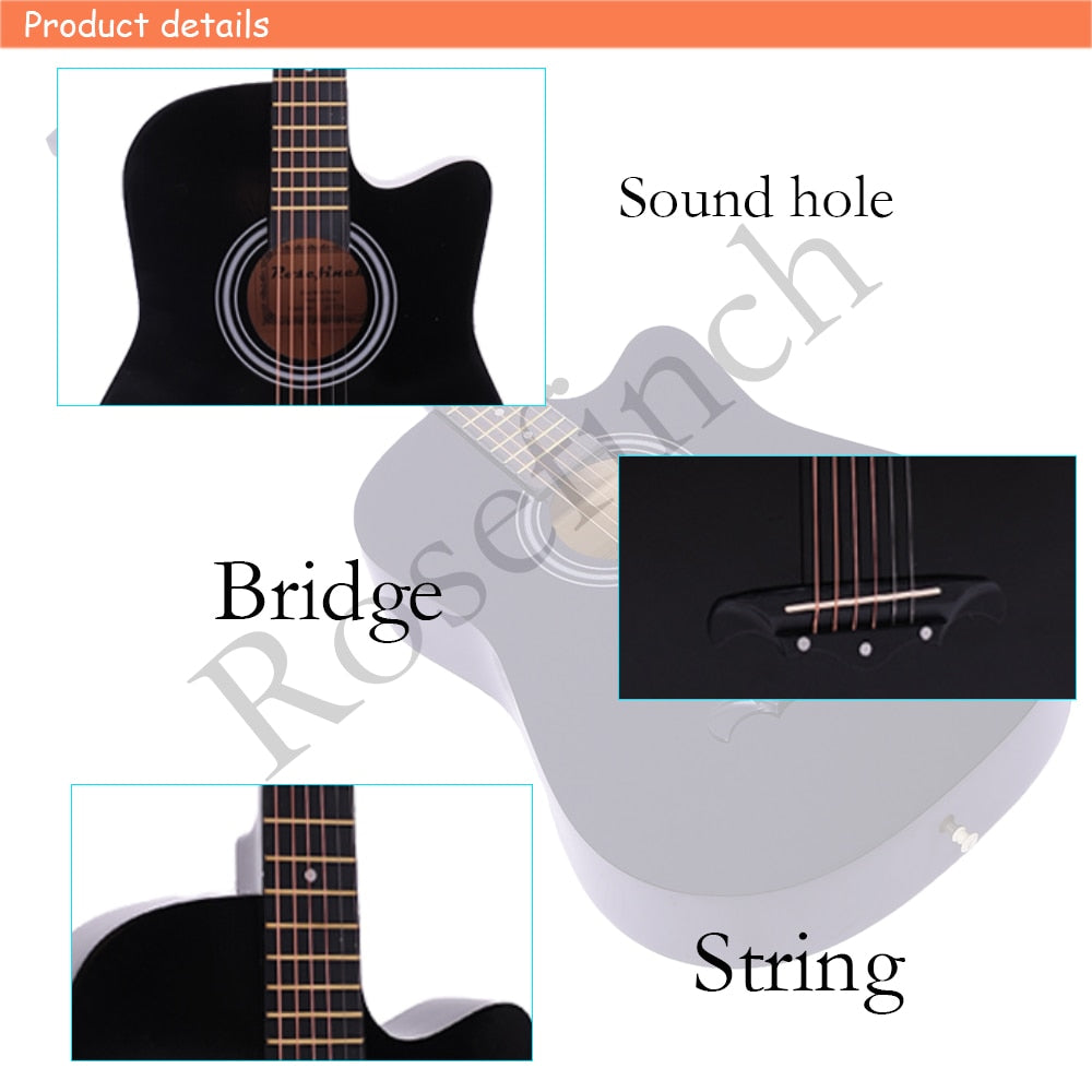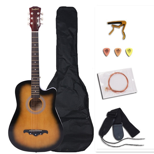 This acoustic guitar comes in size of 38/41 inch, suitable for music lover, student and beginner.