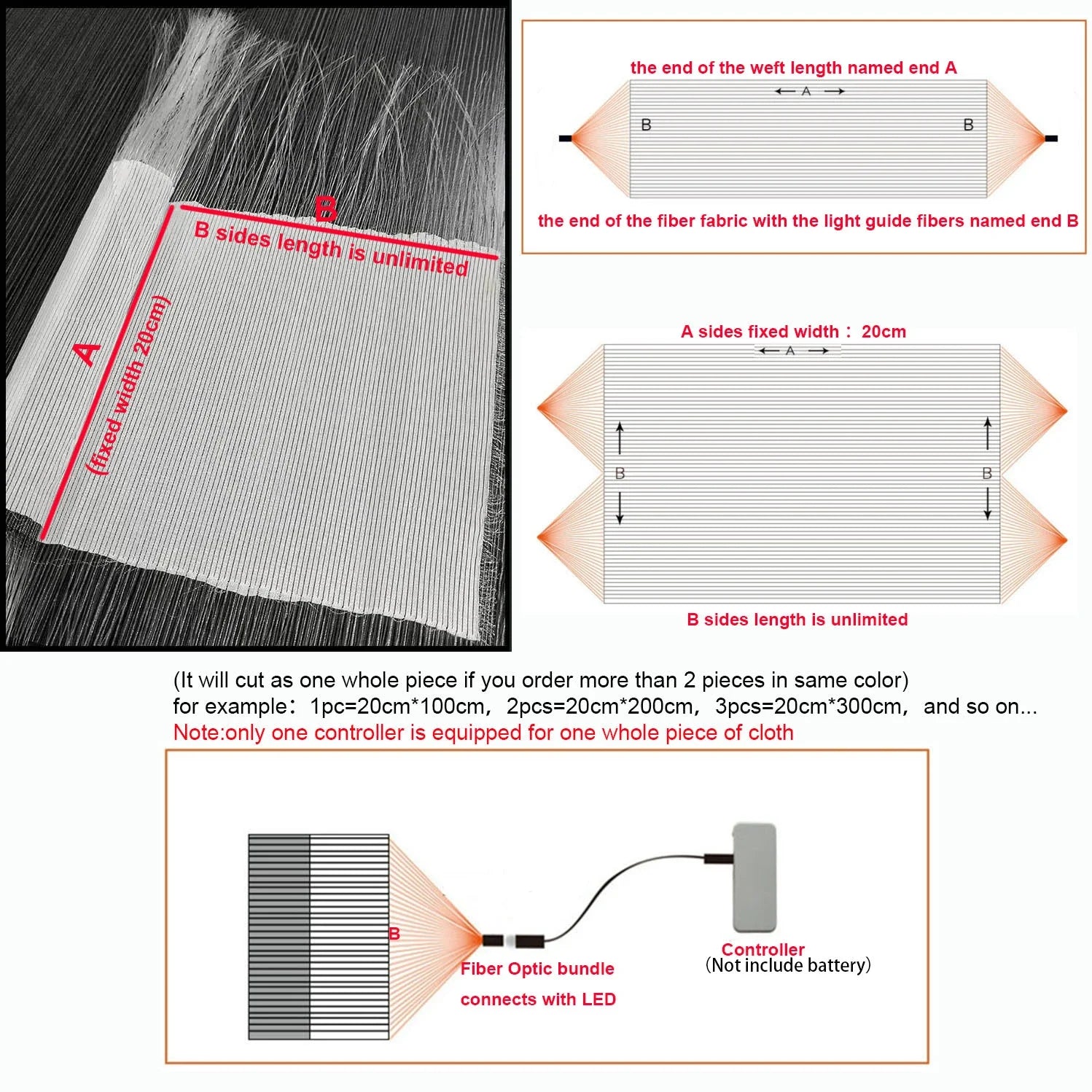 Illuminated 100cm Fiber Optic Fabric for amplifier design
