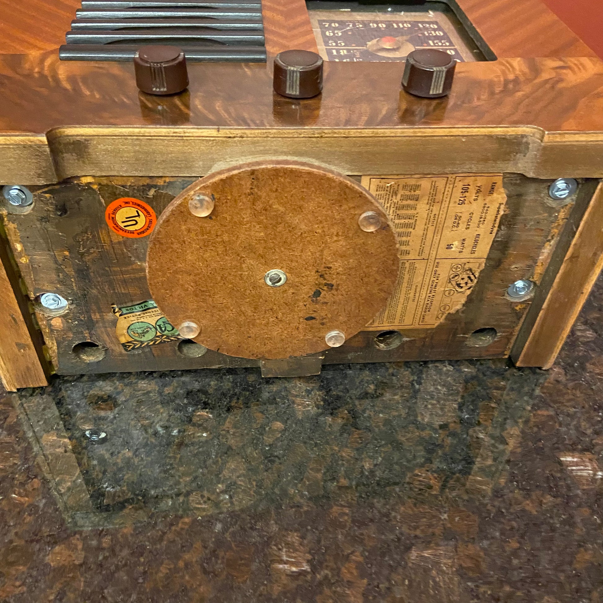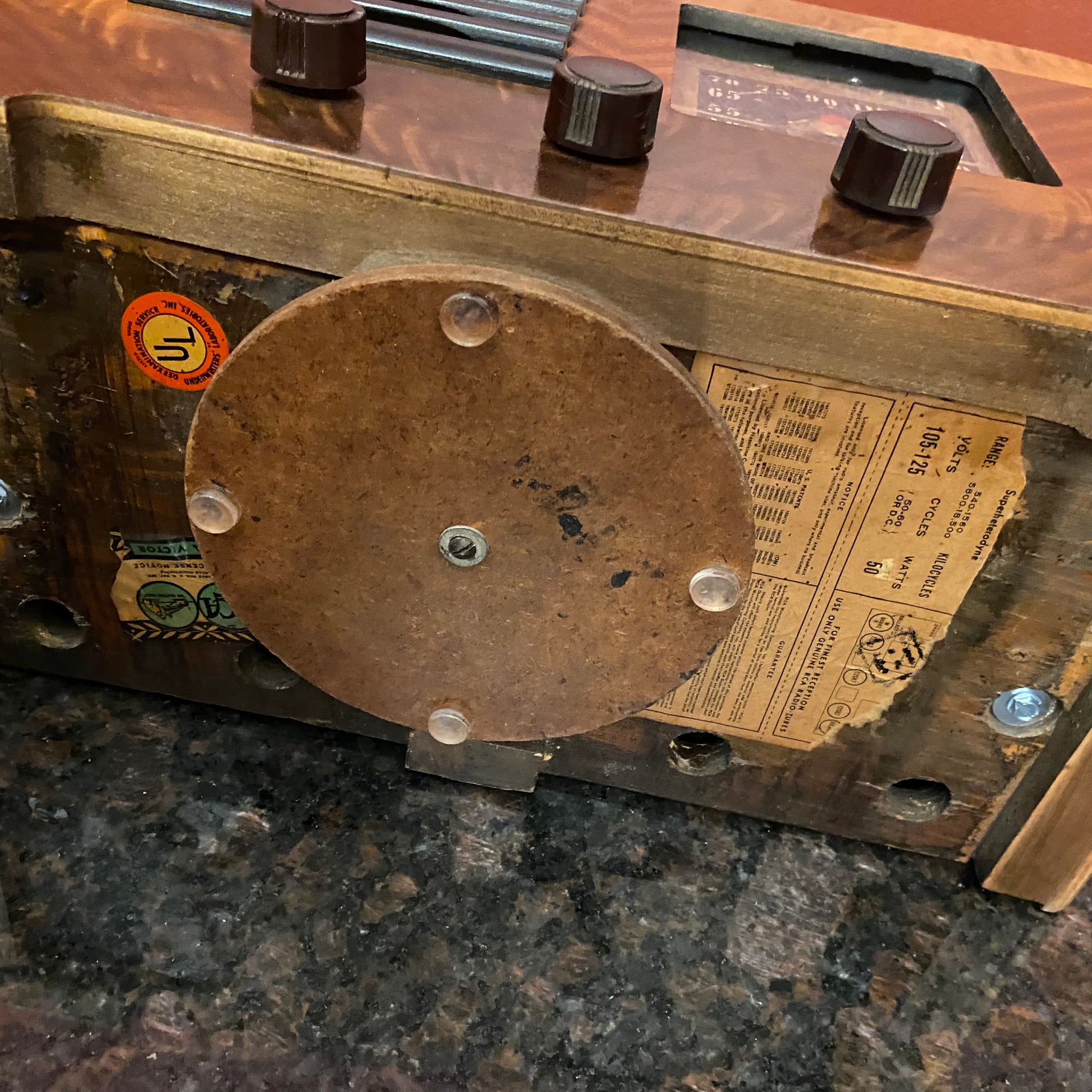 The dial belts are new for smooth motor operation and tuning. The chassis is clean and rust fee. The radio has very nice reception with no hum